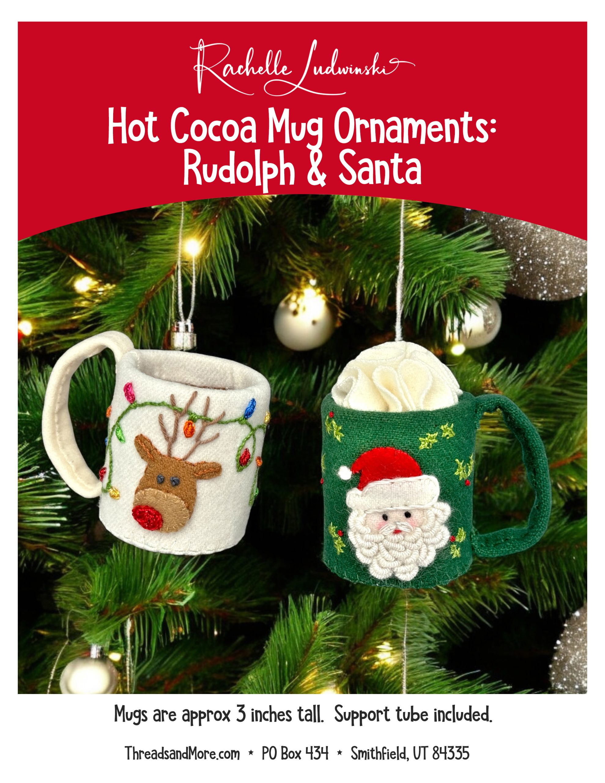 Bring the magic of Christmas to your craft table with the Hot Cocoa Mug Ornaments: Rudolph & Santa Kit. These festive wool mugs feature two of the season’s most beloved characters — Santa Claus with his snowy beard and Rudolph with his bright red nose and string of lights.
